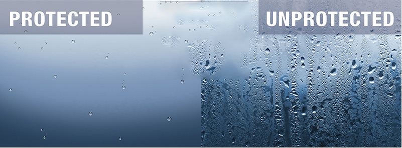 PROTECTIVE GLASS COATING® is extremely durable, time & labor efficient. It is unmatched in terms of ease of application, stability, shelf life and cost per sq. foot. Protective Glass Coating resists soiling, staining, weathering, fine scratches, etching, water spots and mineral build-up. It makes only periodic cleaning & maintenance of glass easier and less costly.